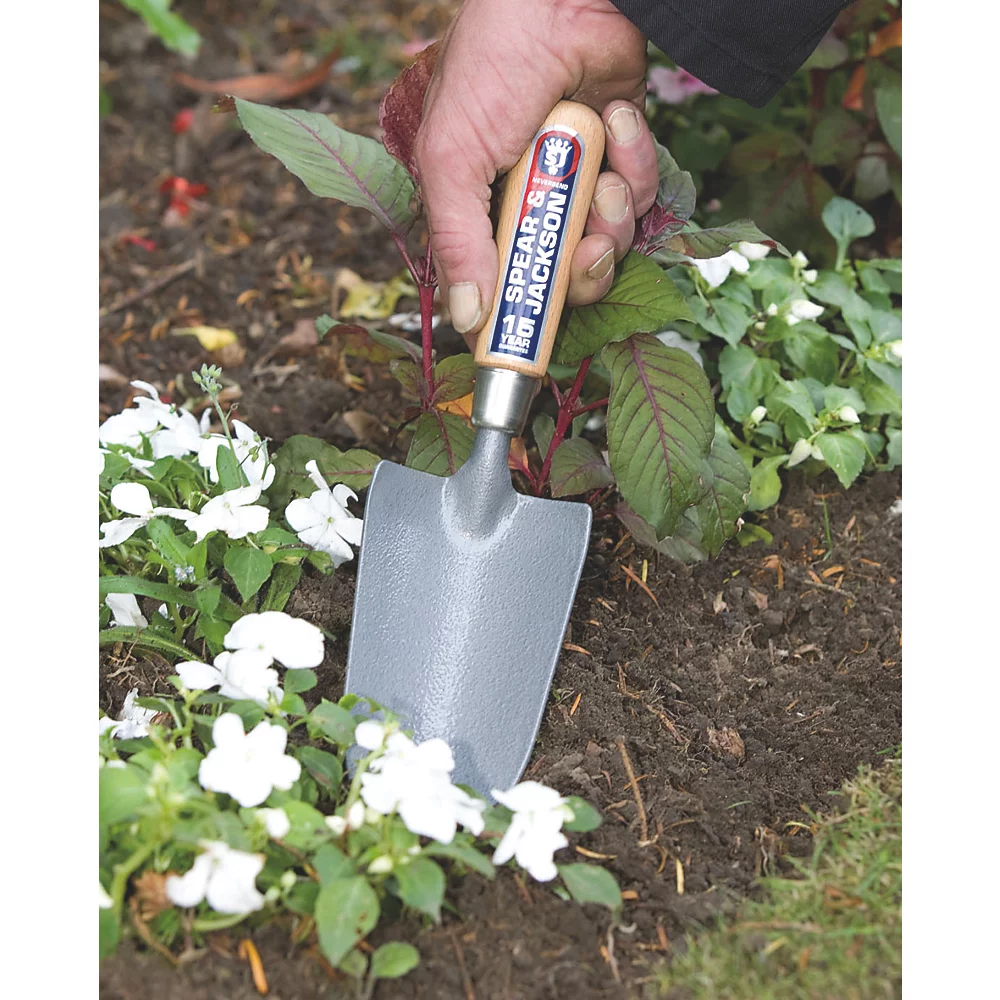 Tête en acier carbone. Tête à revêtement époxy et finition martelée pour une meilleure résistance à la rouille, aux rayures, à l’humidité et aux alcalis présents dans le sol. Poignée en bois dur résistante aux intempéries pour une plus grande durabilité.