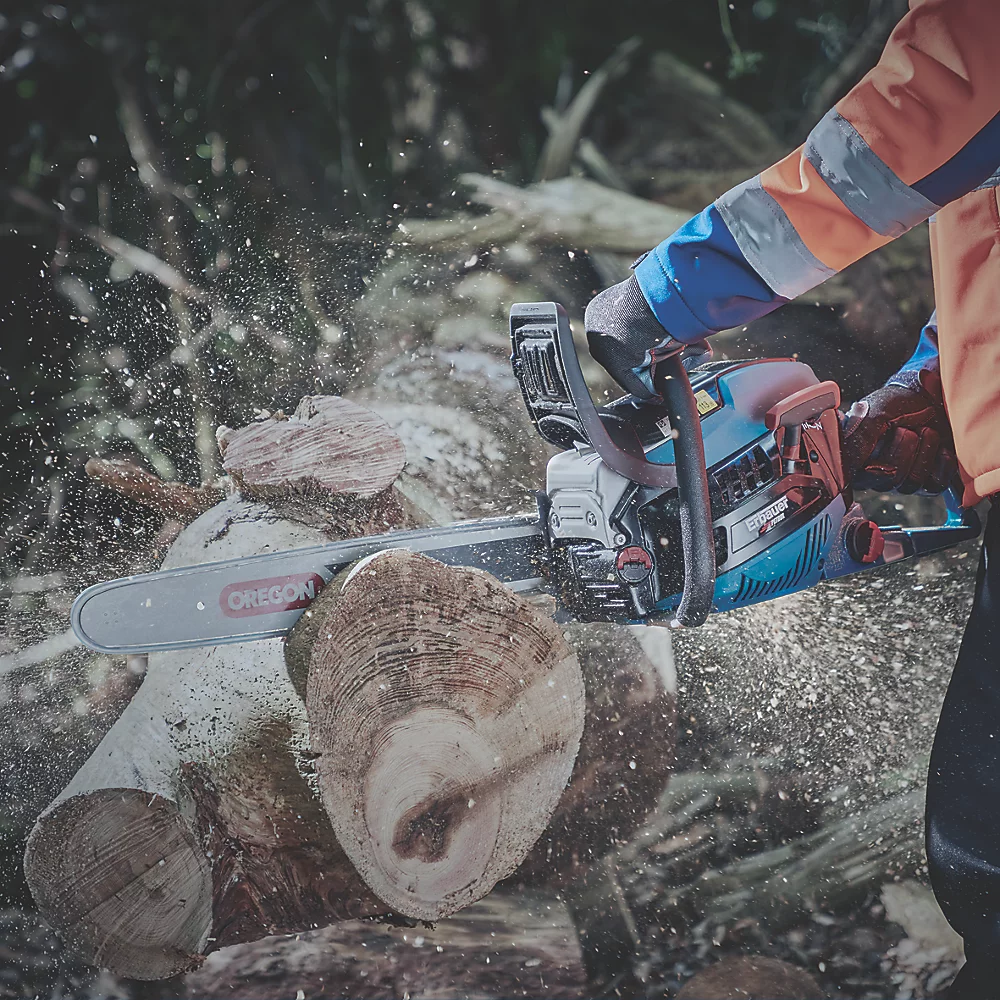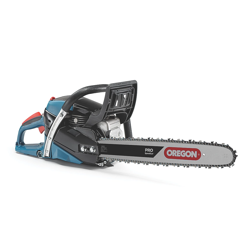 | Contenu | Tronçonneuse, guide-chaîne Oregon, chaîne Oregon, cache du guide-chaîne, bouteille de mélange à 2 entrées, douille de bougie d'allumage, tournevis, lime et sac de transport pour utilisation intensive. |