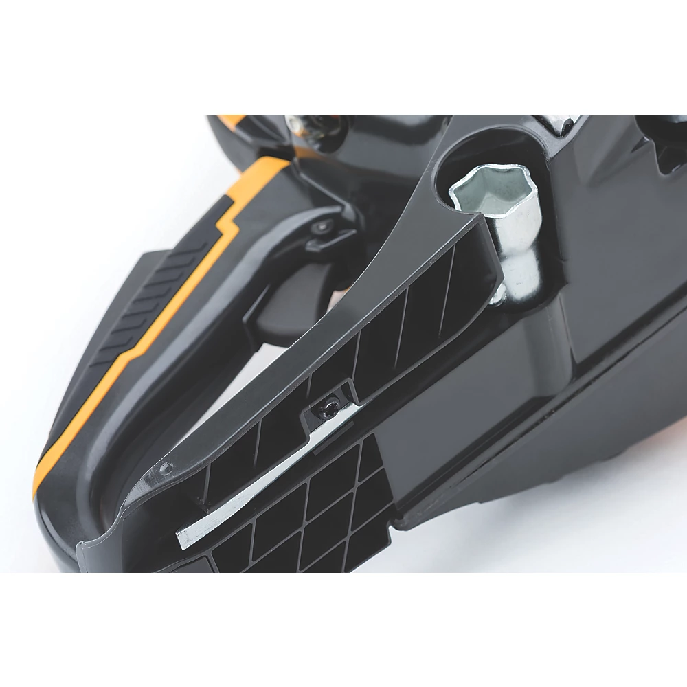 Alimentée par un moteur thermique de 42,4cm³ (1,9kW) qui offre puissance et polyvalence. Dotée d’un guide-chaîne de 40cm et d’un capot moteur en magnésium qui garantit robustesse, légèreté et refroidissement rapide. La clé de tension est accessible sous la poignée arrière, et la pompe à huile est automatique et réglable. Les opérations d’entretien peuvent être effectuées rapidement et facilement grâce à des fonctionnalités telles que la poignée d’ouverture du couvercle de filtre à air sans outils supplémentaires et la fenêtre de contrôle du niveau du réservoir de carburant. La poignée soft ergonomique et le système à ressort réduisent les vibrations et améliorent le confort.
